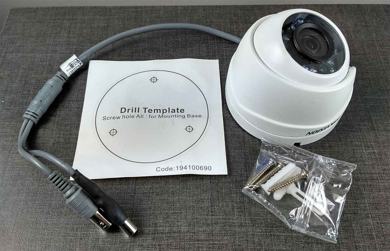 Κάθε κάμερα, ανεξαρτήτως αν είναι θόλου, σφαίρας ή συμπαγής, συνοδεύεται από υλικά στερέωσης - βίδες και πλαστικά βύσματα (συνήθως 3 στον αριθμό). Στη βάση της η κάμερα έχει μερικές τρύπες ή πλαστικά στερεώματα. Τα πλαστικά βύσματα βιδώνονται μέσα από αυτές τις τρύπες και έτσι η κάμερα στερεώνεται στην επιφάνεια. Οι περισσότεροι κατασκευαστές περιλαμβάνουν στα σετ τους το λεγόμενο πρότυπο διάτρησης (drill template) ή χαρτάκι / αυτοκόλλητο με τις θέσεις των τρυπών. Το πρότυπο διάτρησης είναι πολύ βολικό, επειδή μπορείτε να το κολλήσετε στον τοίχο και να τρυπήσετε μέσου αυτού, και να είστε σίγουροι ότι μετά δεν θα έχετε προβλήματα με την τοποθέτηση. Αν δεν έχετε τέτοιο πρότυπο στο σετ σας, απλά πρέπει να βάλετε ένα λευκό φύλλο πάνω στη βάση της κάμερας και με ένα μολύβι, ένα κατσαβίδι ή αλλό αιχμηρό αντικείμενο να κάνετε τρύπες αντίστοιχες με αυτές της βάσης.