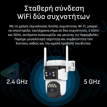 Η κάμερα συνδέεται στο ίντερνετ και μεταδίδει βίντεο ασύρματα. Το μόνο που έχετε να κάνετε είναι να την βάλετε στην πρίζα. Αυτό το μοντέλο υποστηρίζει και τα πιο νέα 5GHz WiFi δίκτυα.