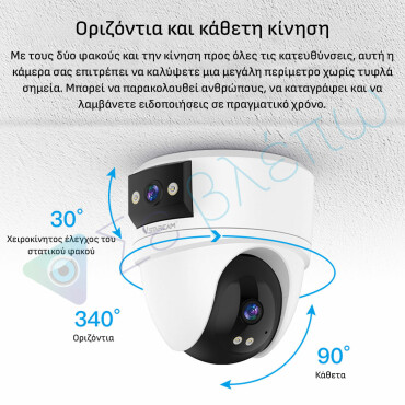 Η κάμερα διαθέτει μηχανοκίνητο περίβλημα ,το οποίο σας επιτρέπει να την περιστρέφετε οριζόντια και κάθετα. Αρκεί μόνο να σύρετε με τον δάχτυλο σας στην οθόνη του τηλεφώνου σας την επιθυμητή κατεύθυνση και η κάμερα θα γυρίσει.