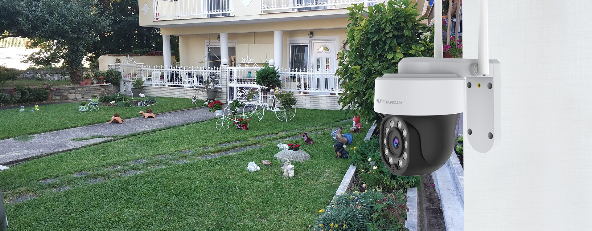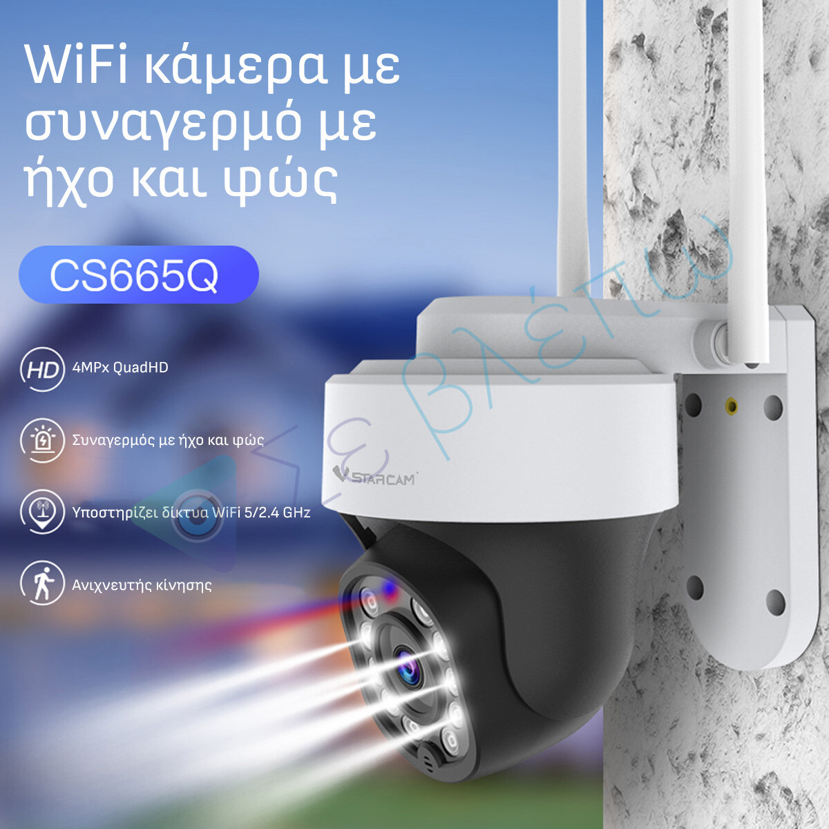 Αυτή η κάμερα διαθέτει ενσωματωμένο φωτισμό που μπορεί να ενεργοποιηθεί αυτόματα όταν ανιχνεύεται κίνηση. Αυτό στέλνει ένα σαφές σήμα στο άτομο που βρίσκεται μπροστά στην κάμερα ότι παρακολουθείται. Μπορείτε επίσης να ανάψετε τα φώτα χειροκίνητα σε περίπτωση που θέλετε να δείτε χρωματιστά στο σκοτεινό μέρος της ημέρας.