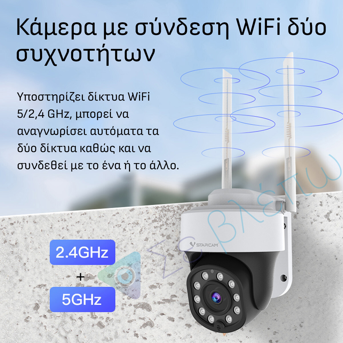 Η κάμερα συνδέεται στο ίντερνετ και μεταδίδει βίντεο ασύρματα. Το μόνο που έχετε να κάνετε είναι να την βάλετε στην πρίζα. Αυτό το μοντέλο υποστηρίζει και τα πιο νέα 5GHz WiFi δίκτυα.